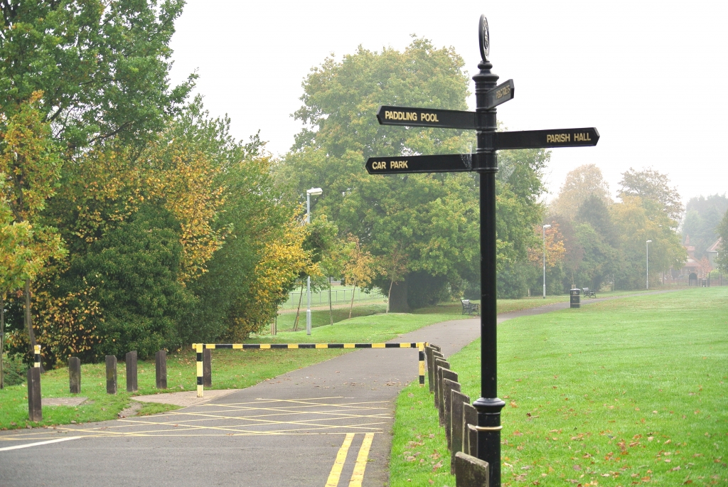 Once crossed the road, you are walking right. Walk all the way down Armitage Road until you reach an island.