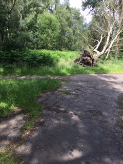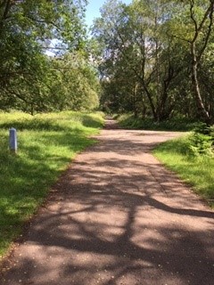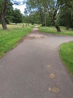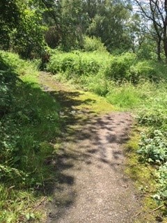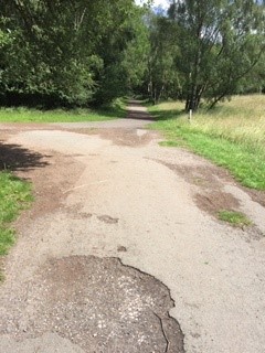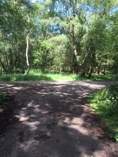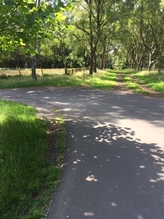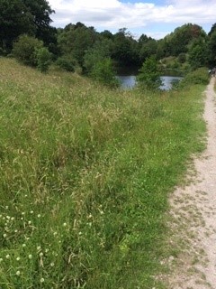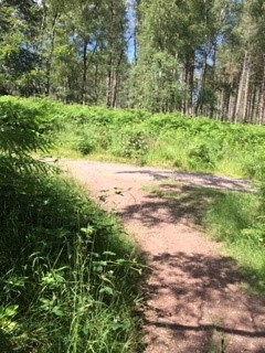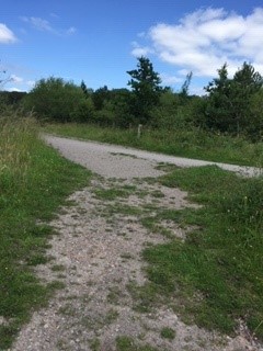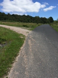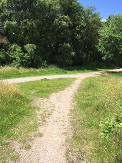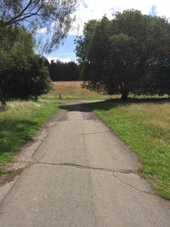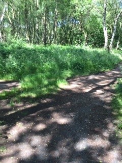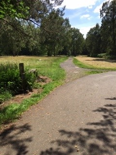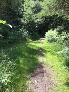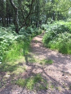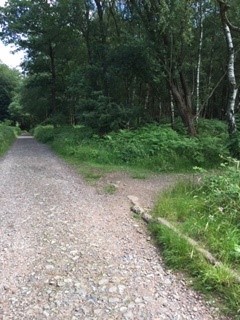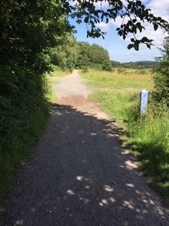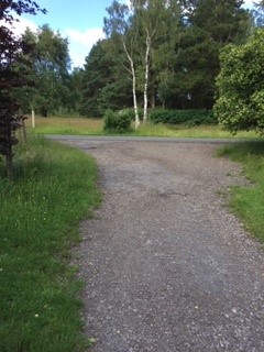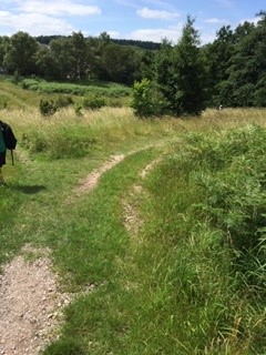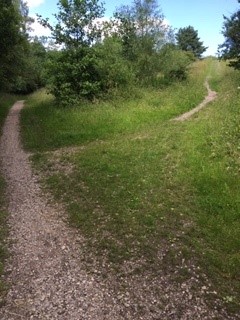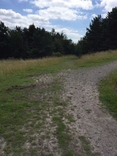 until it turns into a single path with the woods on your right. If you start walking down a steep hill you have gone to far.