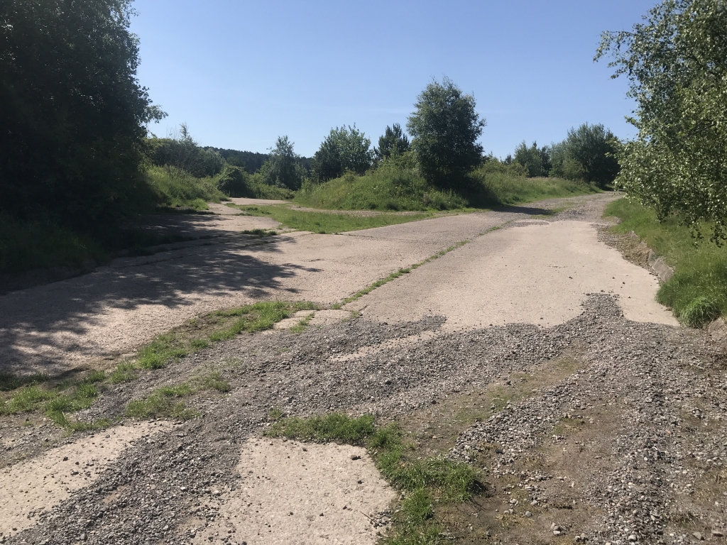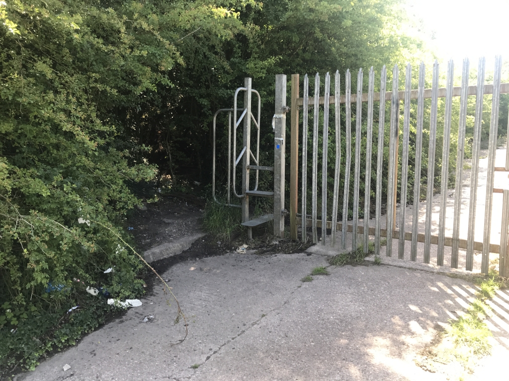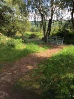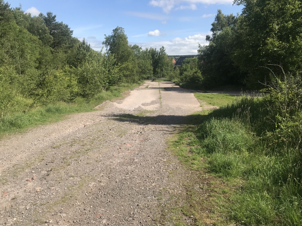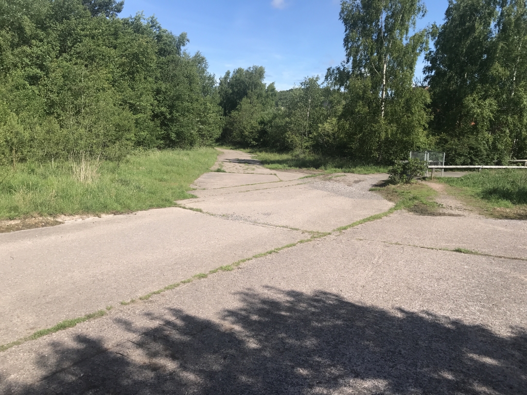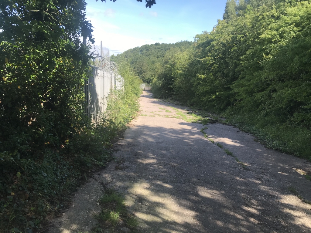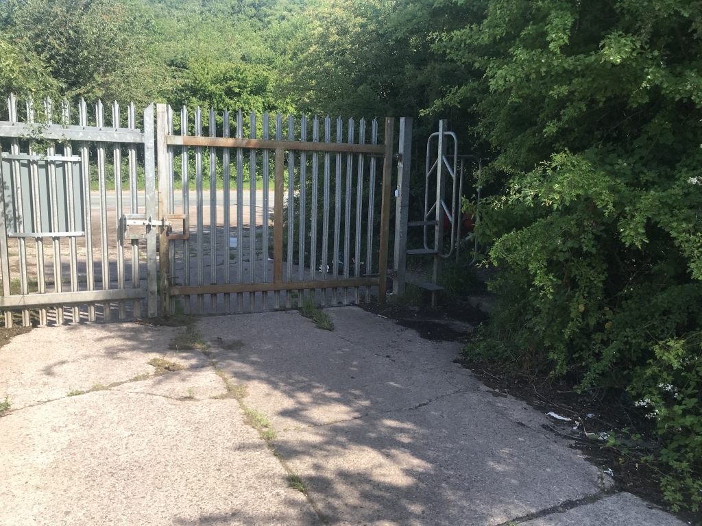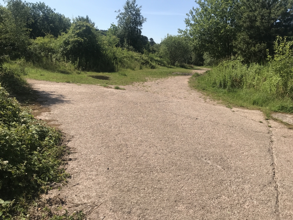 Retrace your steps back across the road, around the gate onto concrete surface.