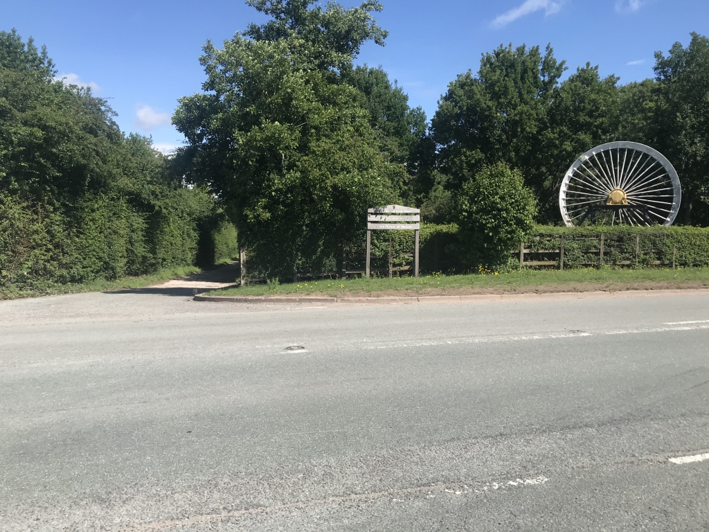 Before crossing the road, look to your left across the road for the Winding Wheel and vehicle entrance a little further along.