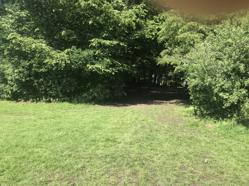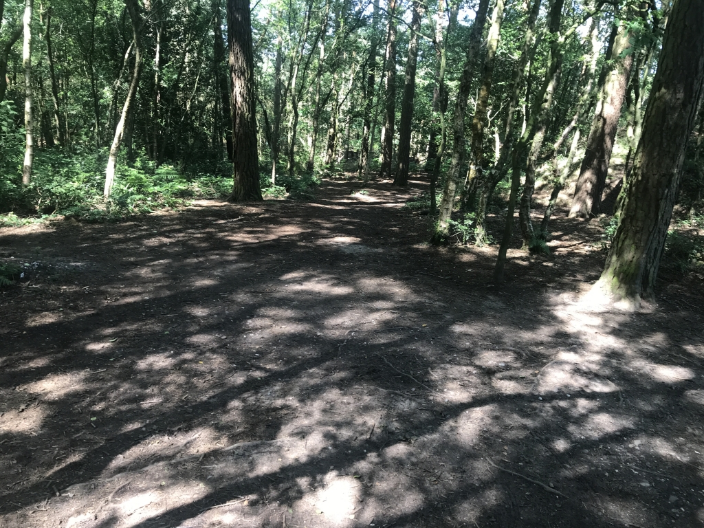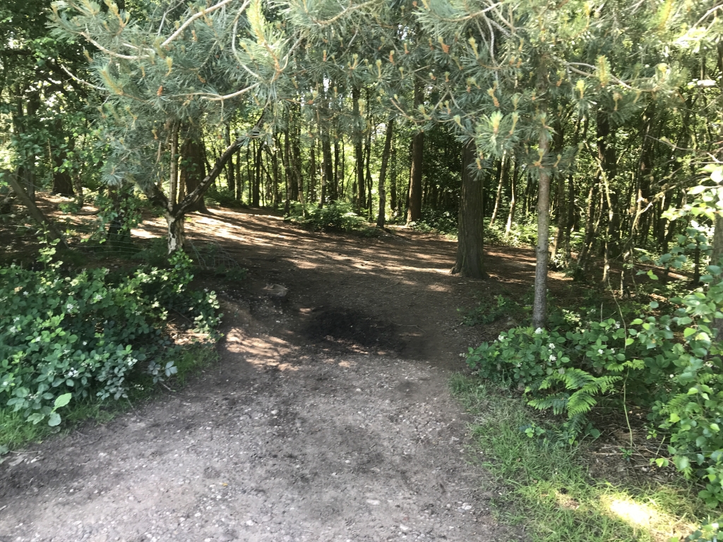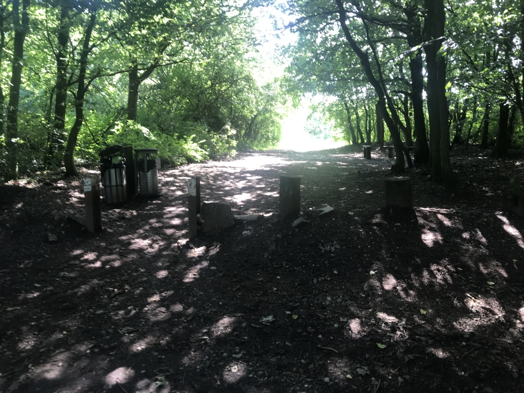 Eventually reaching the clearing, and the car park through the trees on the right.