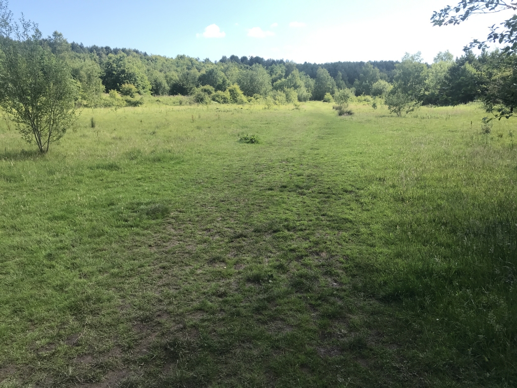 Follow this well worn path across grassland.