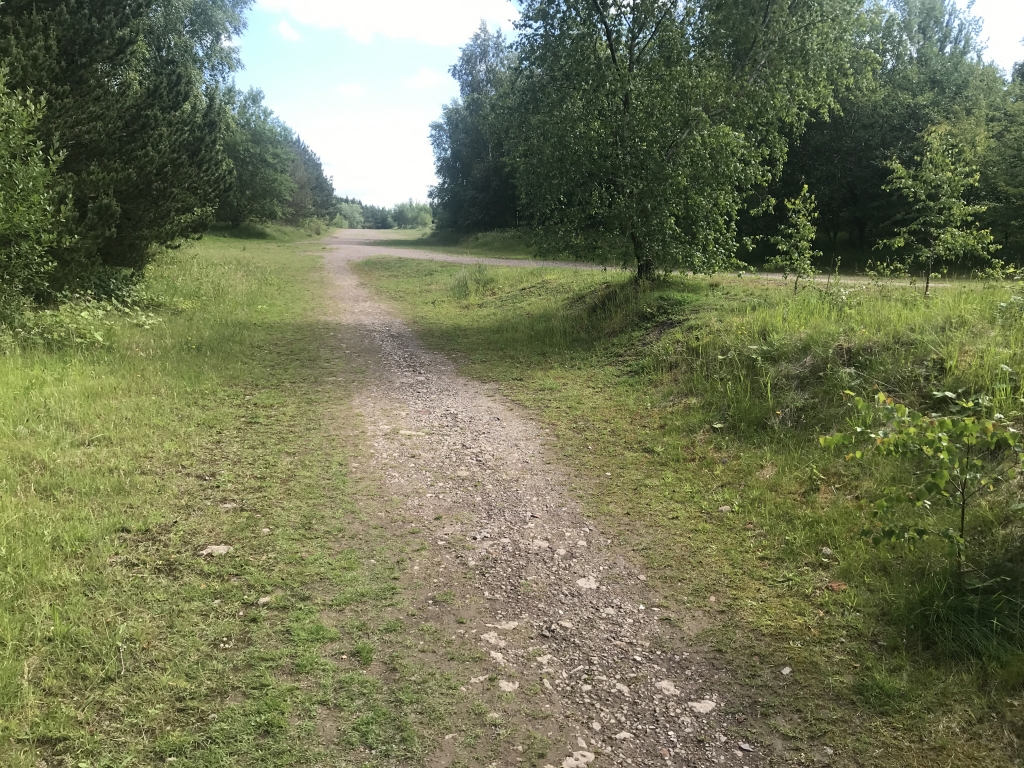 Follow the path as it joins and path from the right, carry straight on this wide Gravel Road