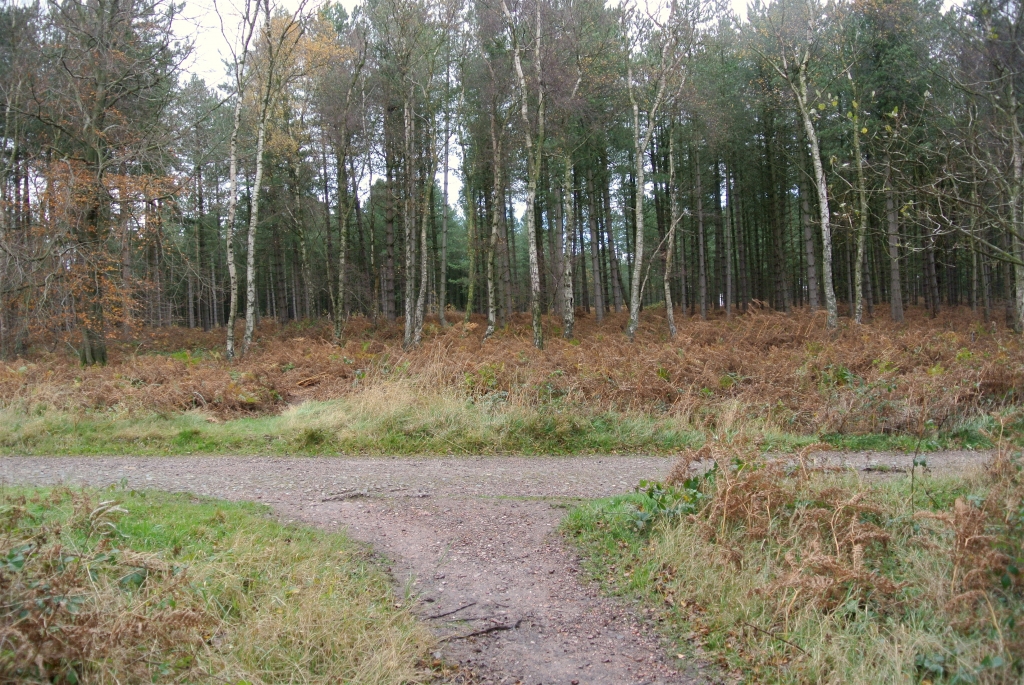 When this path meets another, turn right up the slope.